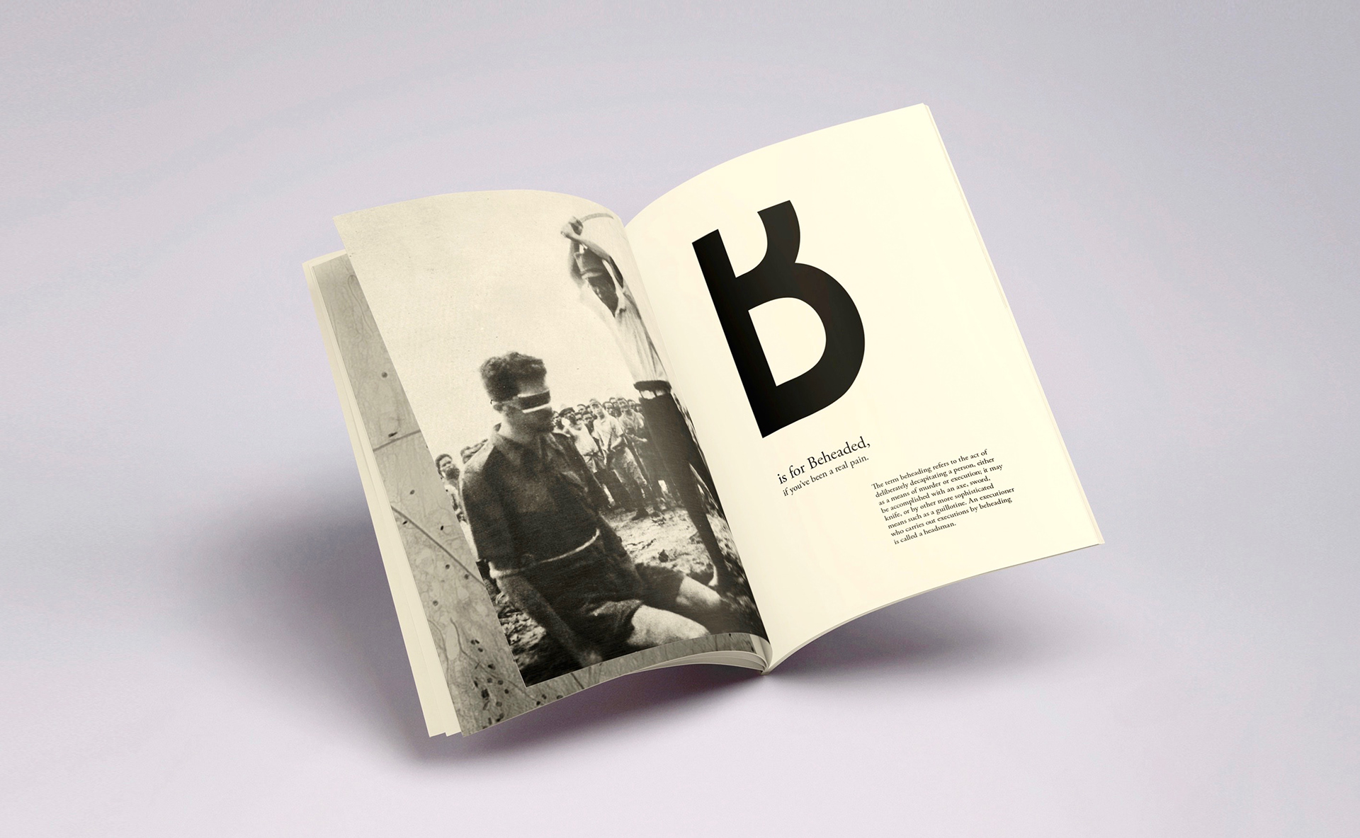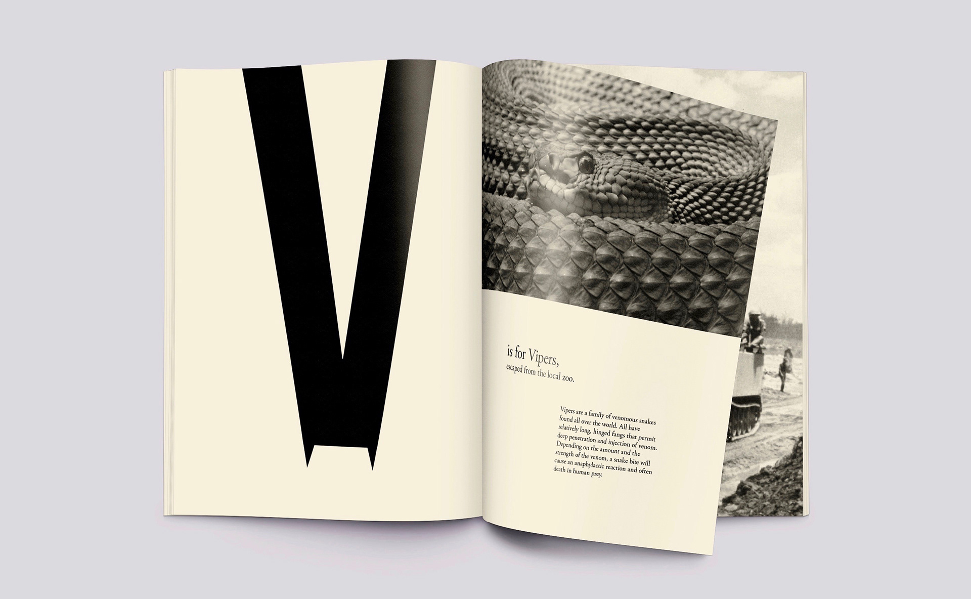 This project created in 2016 in response to one of the International Society of Typographic Design's annual briefs. The brief called for a typographic artefact and accompanying poster that was thematically related to death. I wrote and designed 'The Alphabet of Death' as a morose but humorous take on a children's alphabet book. It was awarded a certification by the ISTD and also won a Bronze Pin at the 2016 Best Awards.
